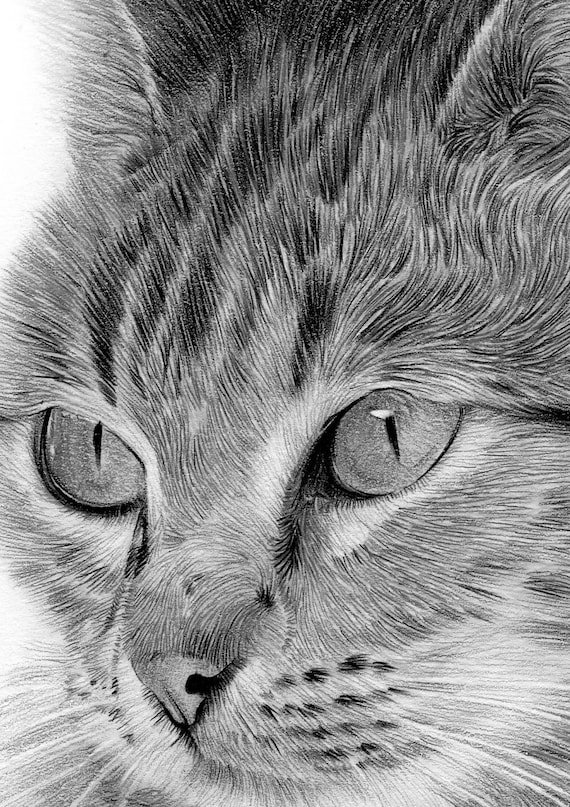 Tabby Cat Original B W Pencil Drawing Portrait Size Etsy Uk